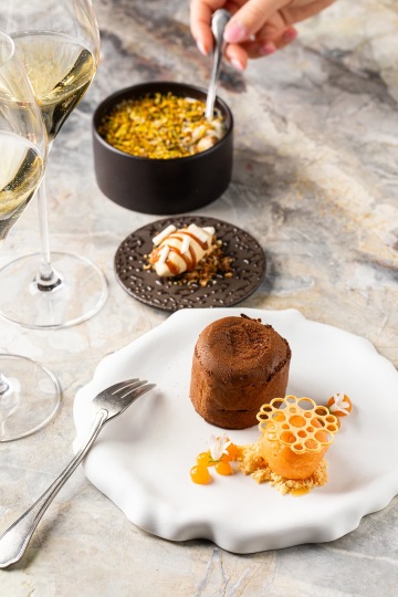 Fondant of Michel Cluizel chocolate, cedrate, lemon gelato
